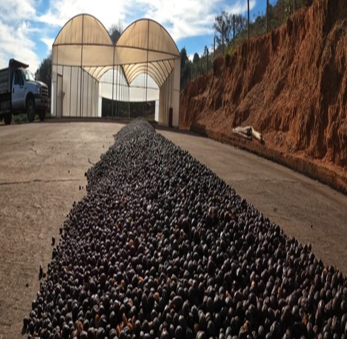 - コーヒーの樹上で熟した後、木の上で生らせたまま乾燥させます。 セラードでは雨季と乾季がはっきりと分かれているため、 この様な収穫方法が可能です。この時期に雨に降られるとダメージが出る可能性があり他の産地では樹上で乾燥さ せる事は難しいと言われています。 本来、樹上でチェリーを生らせたまま乾燥させると、木に大きな負担を与えることとなりますが収穫時期のタイミング(遅れ) により生産されます。弊社のグループ農園では計画的に樹上で 乾燥するのを待って収穫するという生産者もいます。「甘味が増す・マイルドになる」などと言われています。