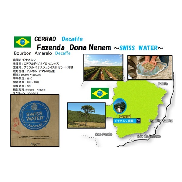 ㈱セラード珈琲では近年増加するカフェインレス需要に応えるため、年々ラインナップを充実させております。新しく弊社オリジナルとしてブラジルからカフェインレスでは珍しい、商品指定の農園ものとして特別に『ブルボン・アマレロ』を輸入。カフェイン除去方は現在、一番品質が良いとされオリジンがはっきりとわかる「SWISS WATER PROCESS??」に注目しています。